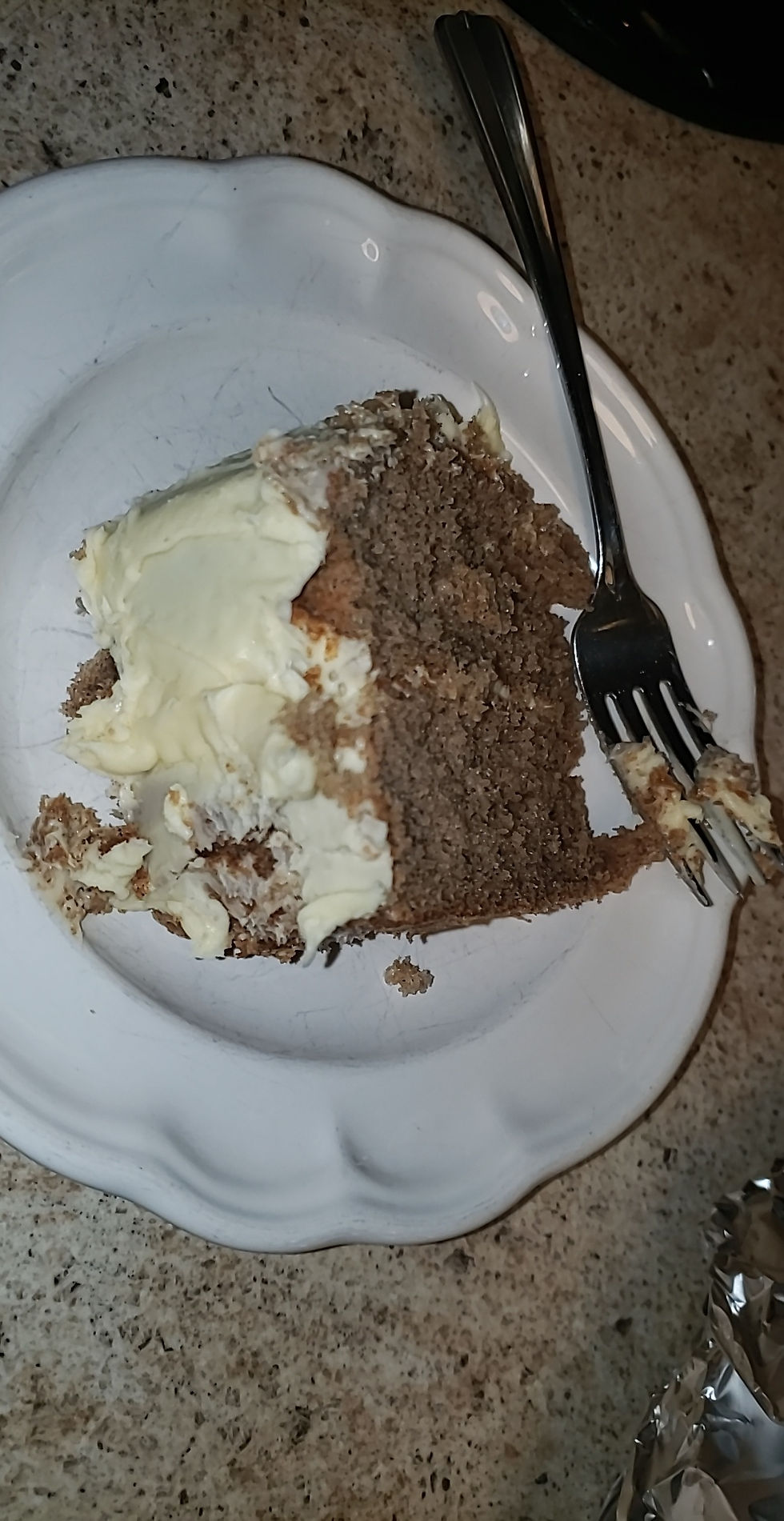 Y'all this was a really good cake. It stayed super moist and it wasn't overly sweet. When the man of the house goes back for seconds you know it was good! Pretty sure this cake won't last long in this house 😂